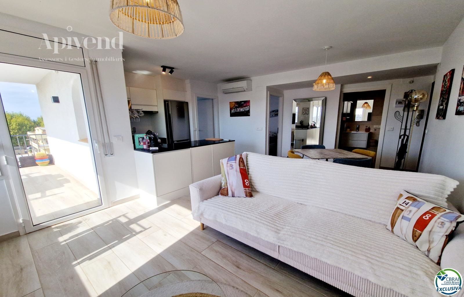 Magnífic apartament totalment renovat amb molt de gust, situat a l’última planta d’una residència tranquil·la de només tres plantes. Ofereix unes vistes espectaculars al port i al canal.