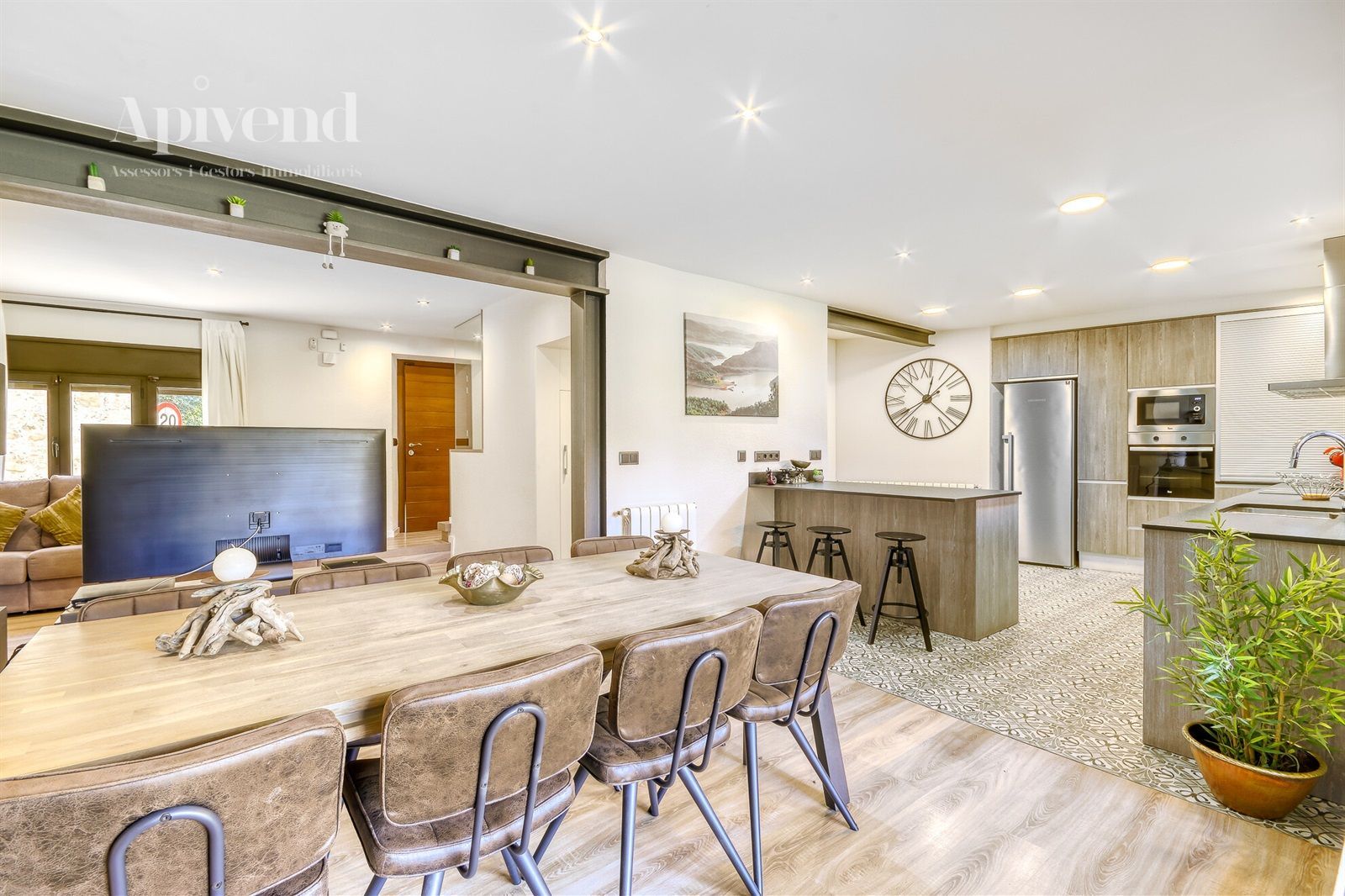 Casa con fachada de piedra, exquisito gusto decorativo, el recibidor-cuarto de estar presidido por una chimenea. Añadiendo el comedor y una cocina abierta, moderna y totalmente equipada, forman un conjunto muy espacioso y agradable. Una sala abierta con tierra de piedra es el lugar ideal para relajarse y como punto de salida amplio jardín con vistas fantásticas en la montaña. La planta baja está equipada con parqué y un equipo de aire acondicionado, amplio armario encuestado, armario de telecomunicaciones, habitación por lavadora, y un baño con plato de ducha.