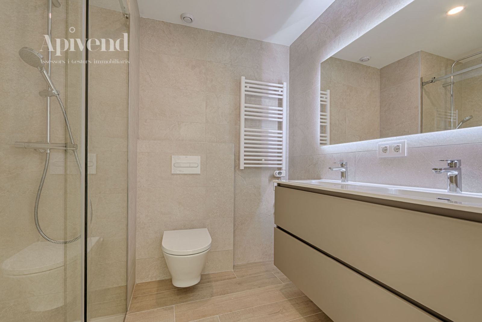 Está equipado de persianas enrollables motorizadas, ventanas de doble vidrio de aluminio y sistema de climatización frío y calor por conductos.